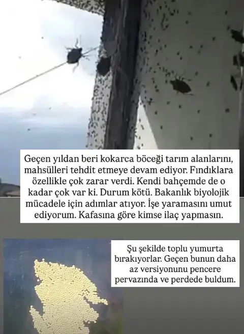 Türkiye’de ilk olarak 2017 yılında tespit edilen kahverengi kokarca böceği, özellikle son yıllarda Karadeniz bölgesinde hızla çoğalarak ciddi bir tehdit haline geldi. Adapazarı’nda bir binayı tamamen saran görüntüler sosyal medyada gündem olurken, Ünye, Giresun, Trabzon ve Samsun illerinden de benzer ihbarlar gelmeye başladı. Sakarya’nın Ferizli ve Söğütlü ilçelerinde de evleri basan ve tarım ürünlerine büyük zarar veren böcekler vatandaşları tedirgin etti.