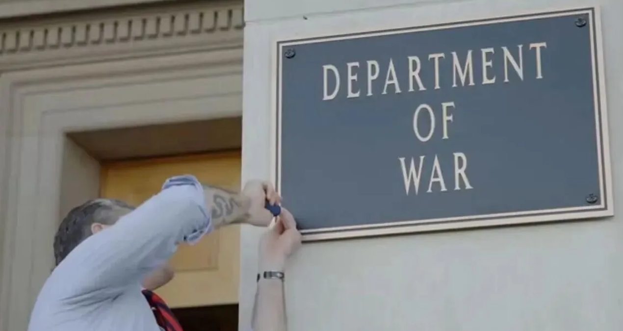 ABD Savunma Bakanlığı (Pentagon) binasının girişindeki tabela değişti. Eylülde kararnamesi imzalanan değişiklik Savunma Bakanının çaktığı tabela ile resmen ‘Savaş Bakanlığı’ oldu.